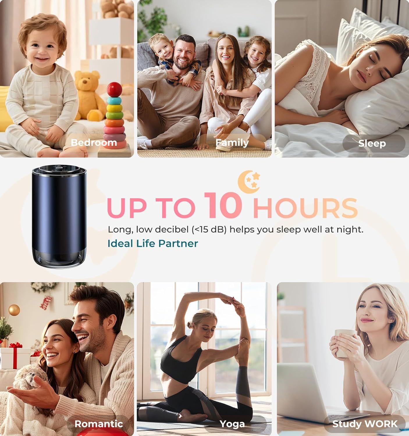 operates at only 23 decibels (quieter than a soft breath), reducing noise by 75% compared to traditional aromatherapy