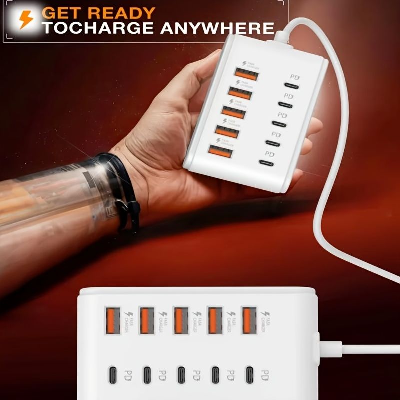 Buy one get one free This 10 port USB fast charging station is suitable for laptops, tablets, and other devices. It's a workspace power hub with a compact design and high-speed charging capabilities.