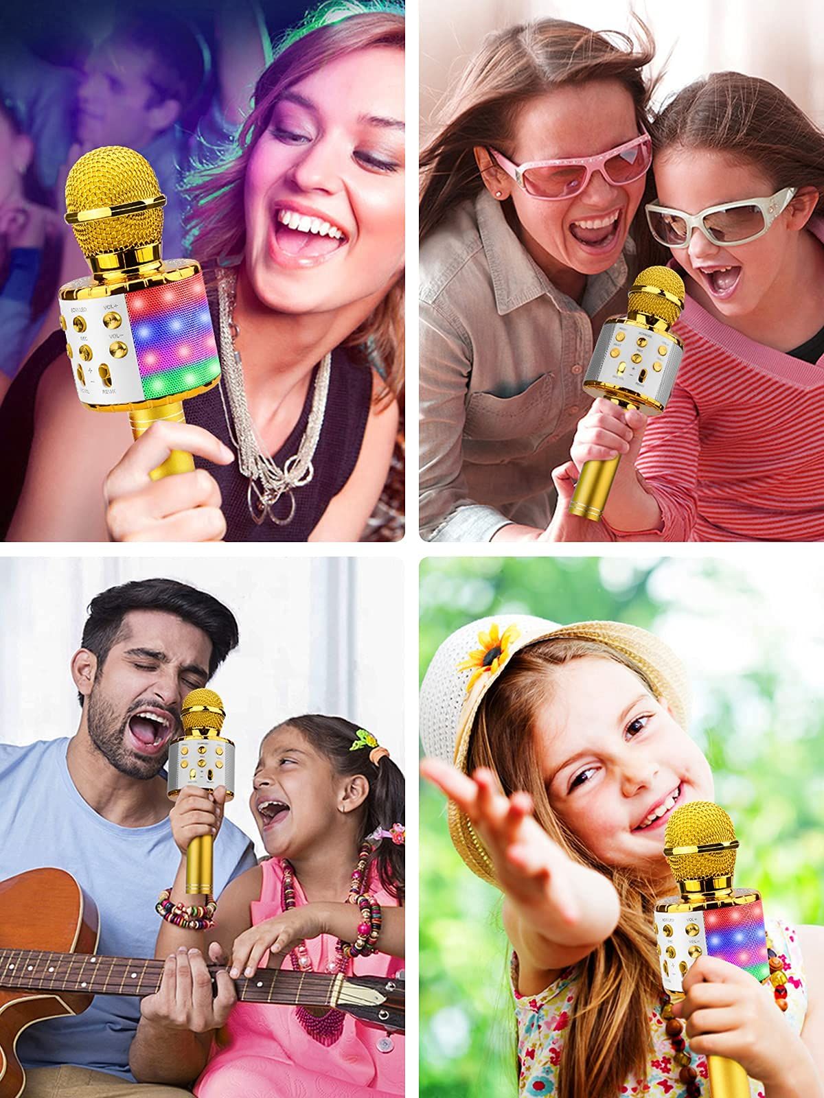 • 【Designed for Professionals】Karaoke Microphone with 3 layered anti noise filter head, which can effectively reduce the air flow and wind noise produced when singing and dust interference, distortion free and anti-howling! Built-in dual high-quality large speakers bring 360-degree super surround feeling, immersive!