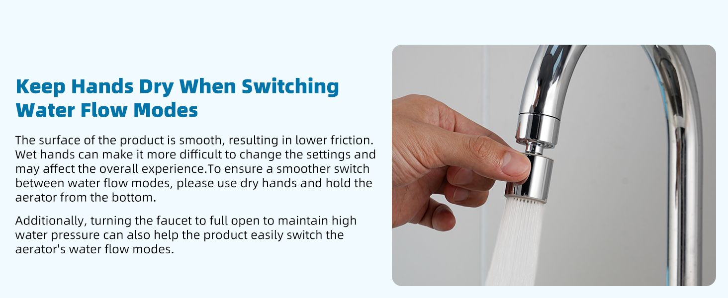- Strong Spray Mode, Soft Bubble Mode: WOLYKIER Faucet Aerator designed with 2 kinds of water flow. Upgraded 280+ Water Outlets to prevent splashing while providing strong pressure. Added with 50% oxygen technology to dense spray, make strong scouring power, soft and non-splashing. Air and water mixed together, soft bubble mode is smooth, and strong to ensure the cleaning effecient.