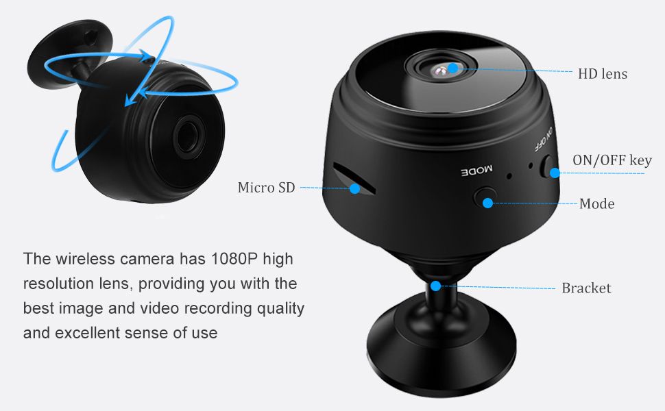 A9 Mini Camera, 1080P HD IP Camera with Magnetic Back Cover, Home Security Mini Camcorder Micro Video Surveillance Camera (Black)