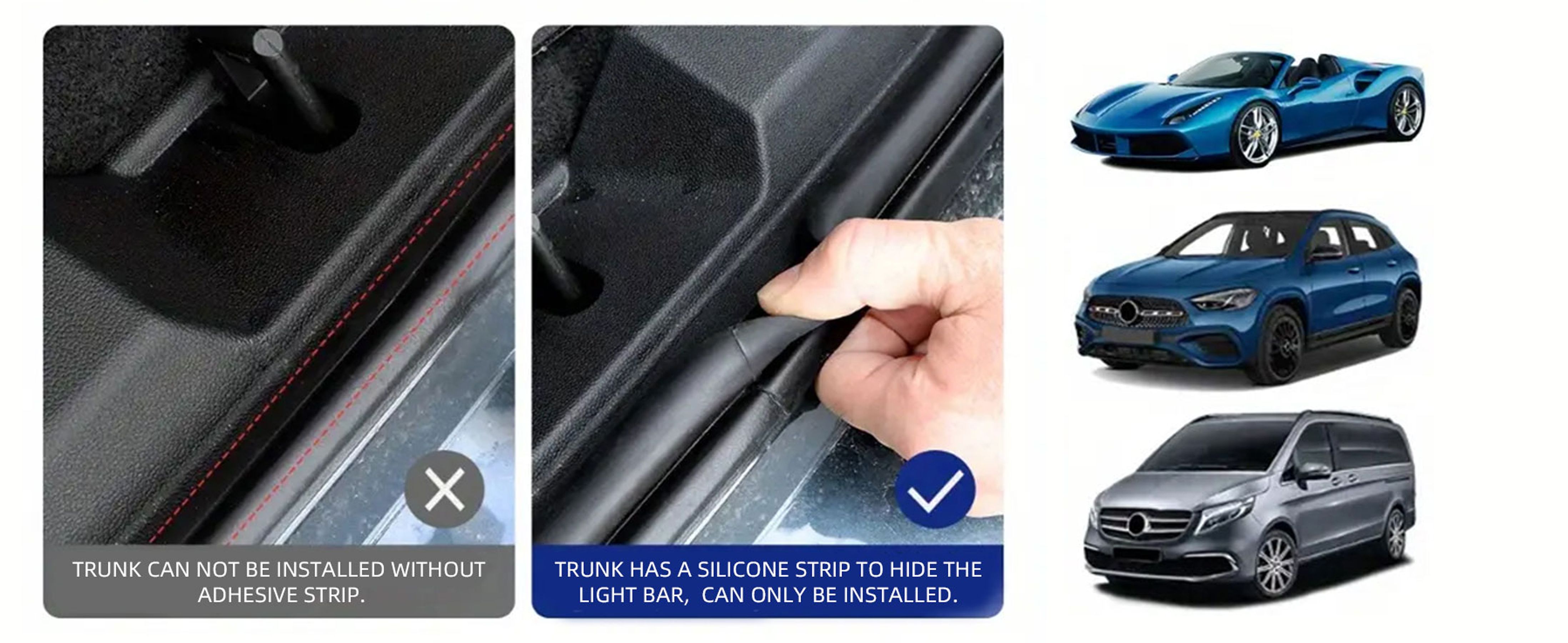 Free cutting: This led light strip for car can be freely cut to fit the trunk length of different vehicle models. The ultra-thin light strip is embedded in the silicone gaps of the trunk, preserving the original appearance of the vehicle.