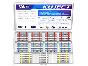 Heat shrinkable welded sealed wire connector kit (120 pieces), waterproof mating connectors with heat shrinkable electrical terminals, insulated solderless wire connectors, suitable for marine, automotive, and truck applications.