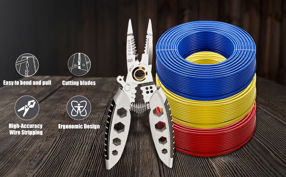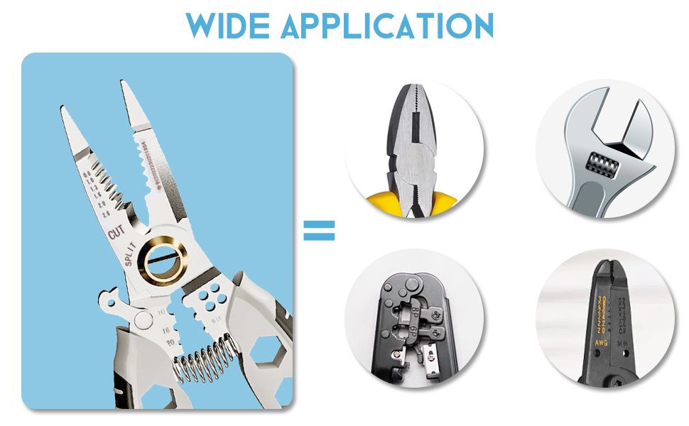 - ✔️ Versatile Functionality: The multi-functional pliers offer a comprehensive ranges of function, including wire stripping, cutting, crimping, separating, gripping, winding, shaving, joining, and screwing. With this tool, you can effortlessly handle various tasks without the need for multiple tools, saving time and effort.