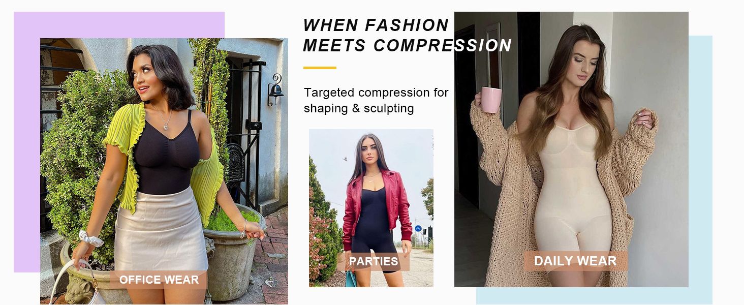 - Occasion: The shapewear is invisible beneath your daily clothes because of its seamless surface, light color. You can wear it anywhere with any outer clothing, such as shorts, low-cut blouses, skirts. It fits Office, Daily Wear, Sleep, Party, etc.
