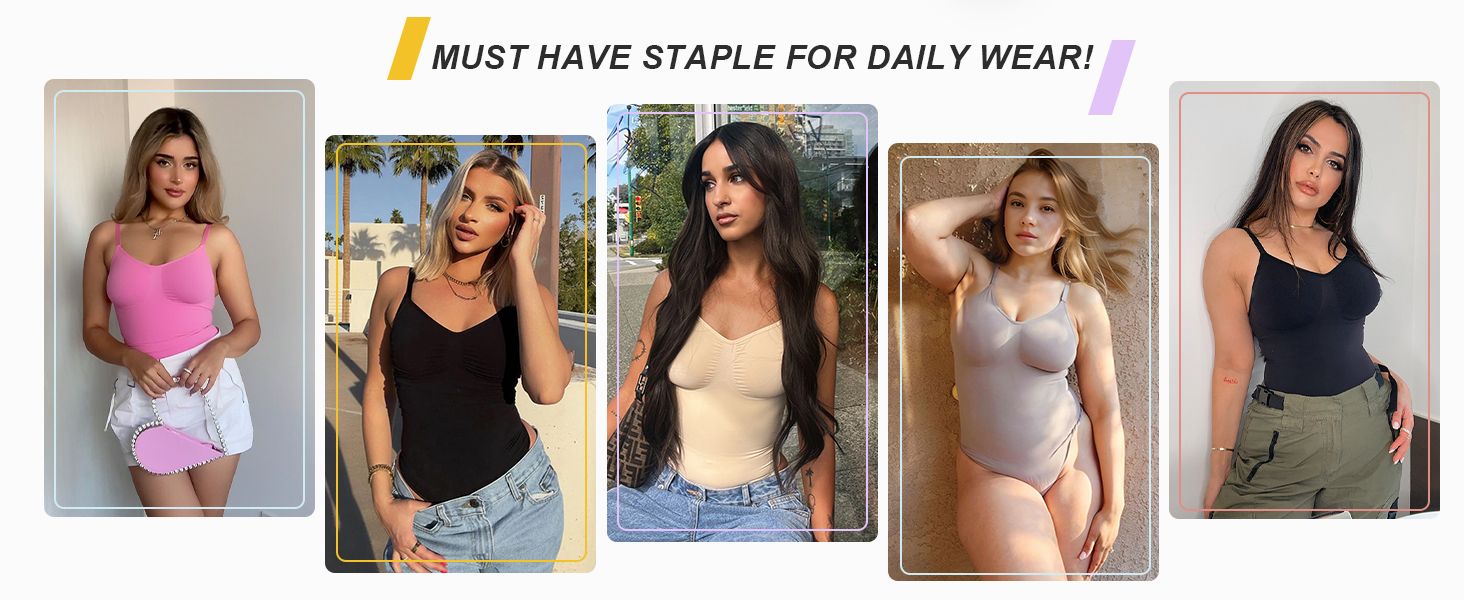 - Tummy Control Bodysuit : This seamless shapewear holds in your core, lifts your chest, and smooths your abdomen. Its whisper-soft and seamless construction makes this shaper piece a necessity for enhancing your body' natural shape.