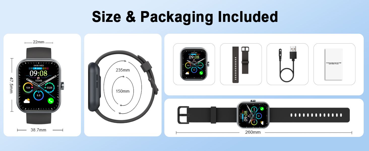 - Bluetooth Calling and Message Notifications: This smart watch for women/men comes with stable Bluetooth 5.3 connectivity and equipped with microphone and speaker, allowing you to make or receive calls directly with your family and friends via smartwatch. The smartwatch also provides notifications of SMS and social media messages (Facebook, WhatsApp, Twitter, Tiktok, Instagram, Gmail etc) So that you will never miss any important information.