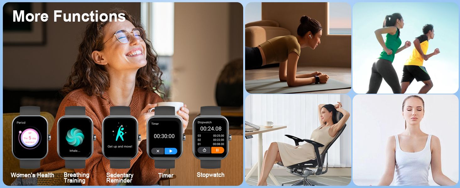 - 24-Hour Health Monitoring Sports Watch: Thanks to the advanced optical sensor, fitness watch provides 24-hour heart rate monitoring, and sleep quality detection (deep sleep, light sleep, awake time). The womens watch can also track and predict menstrual cycles, keeping you informed about your body’s changes. By connecting the watch to the "GloryFit" App, you can view the recorded data to help you develop a healthier lifestyle.(The data is for reference only, not for medical use)