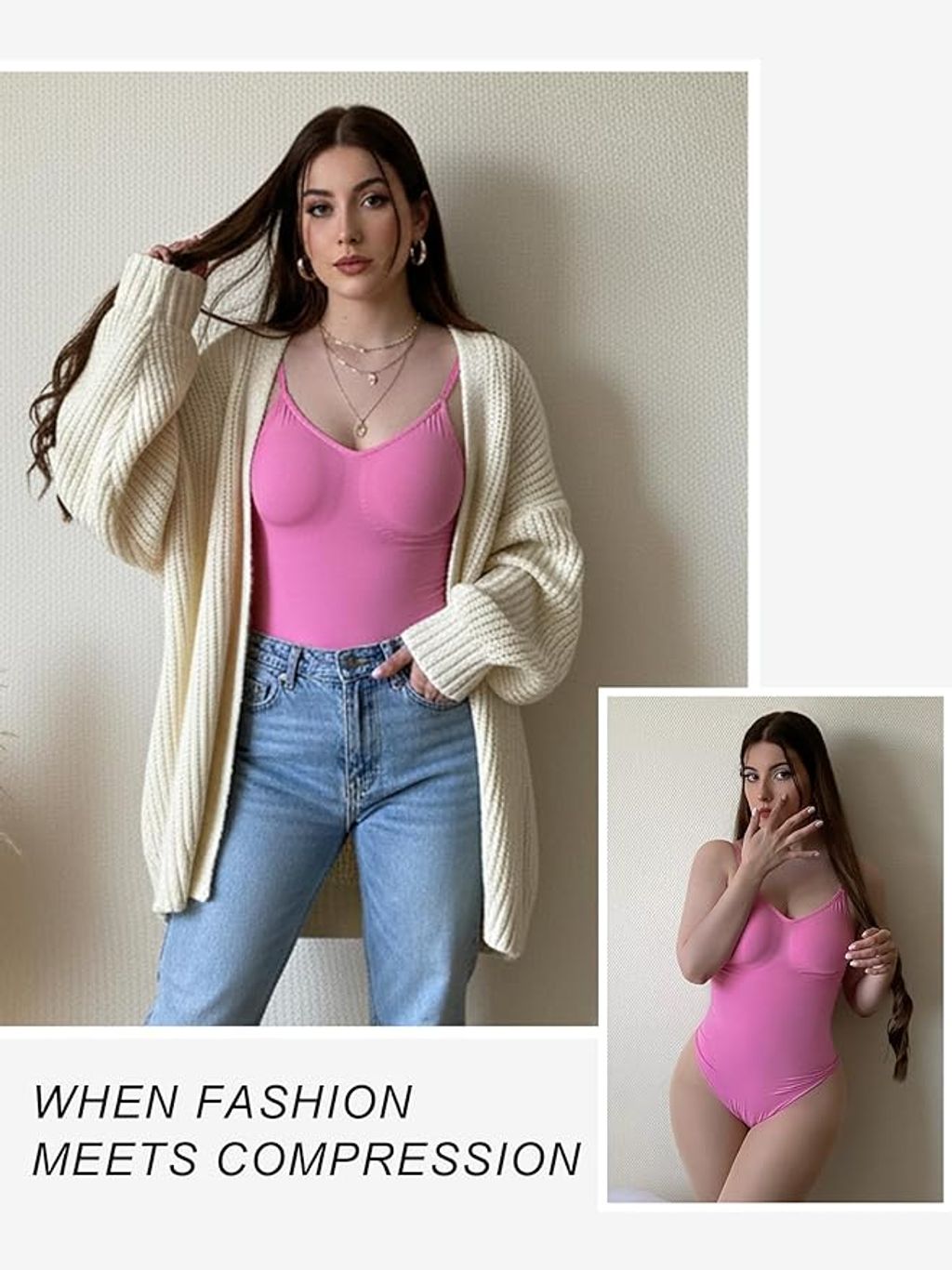 - Tummy Control Bodysuit : This seamless shapewear holds in your core, lifts your chest, and smooths your abdomen. Its whisper-soft and seamless construction makes this shaper piece a necessity for enhancing your body' natural shape.