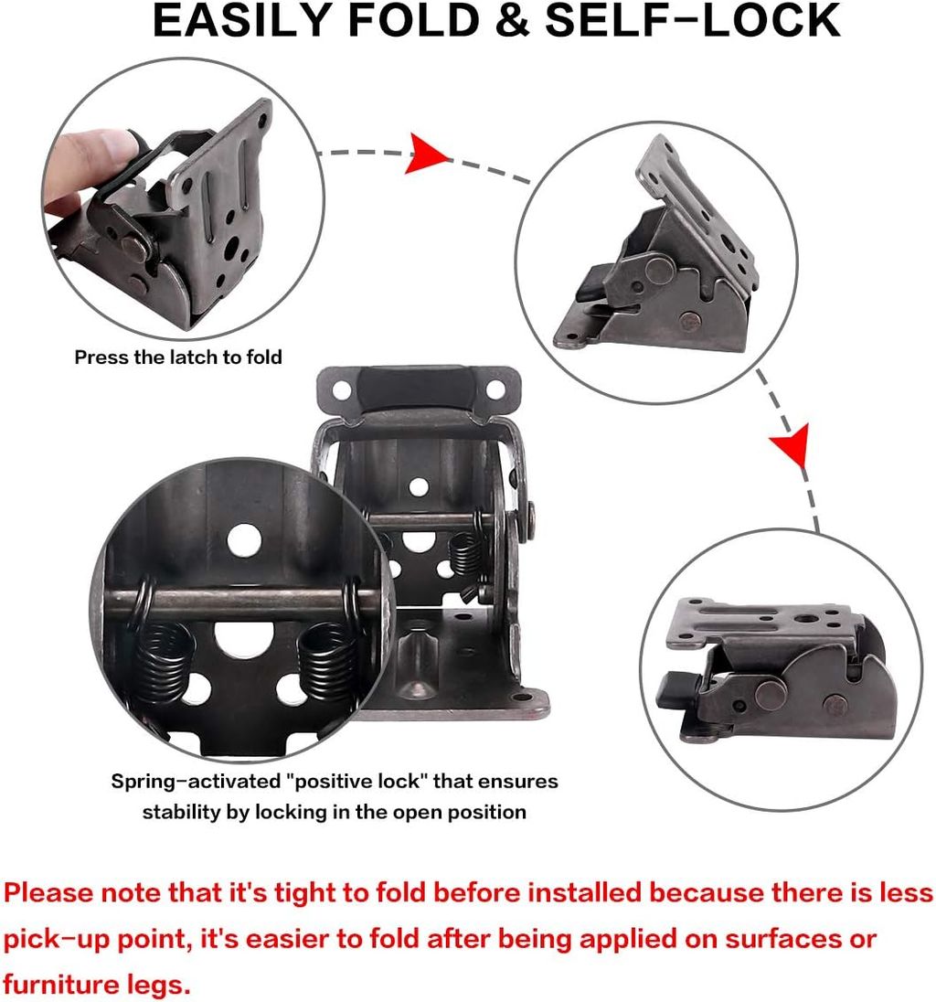 4-pack folding table brackets with self-locking hinges, heavy-duty folding brackets, 90-degree self-locking folding hinges, suitable for table leg furniture.