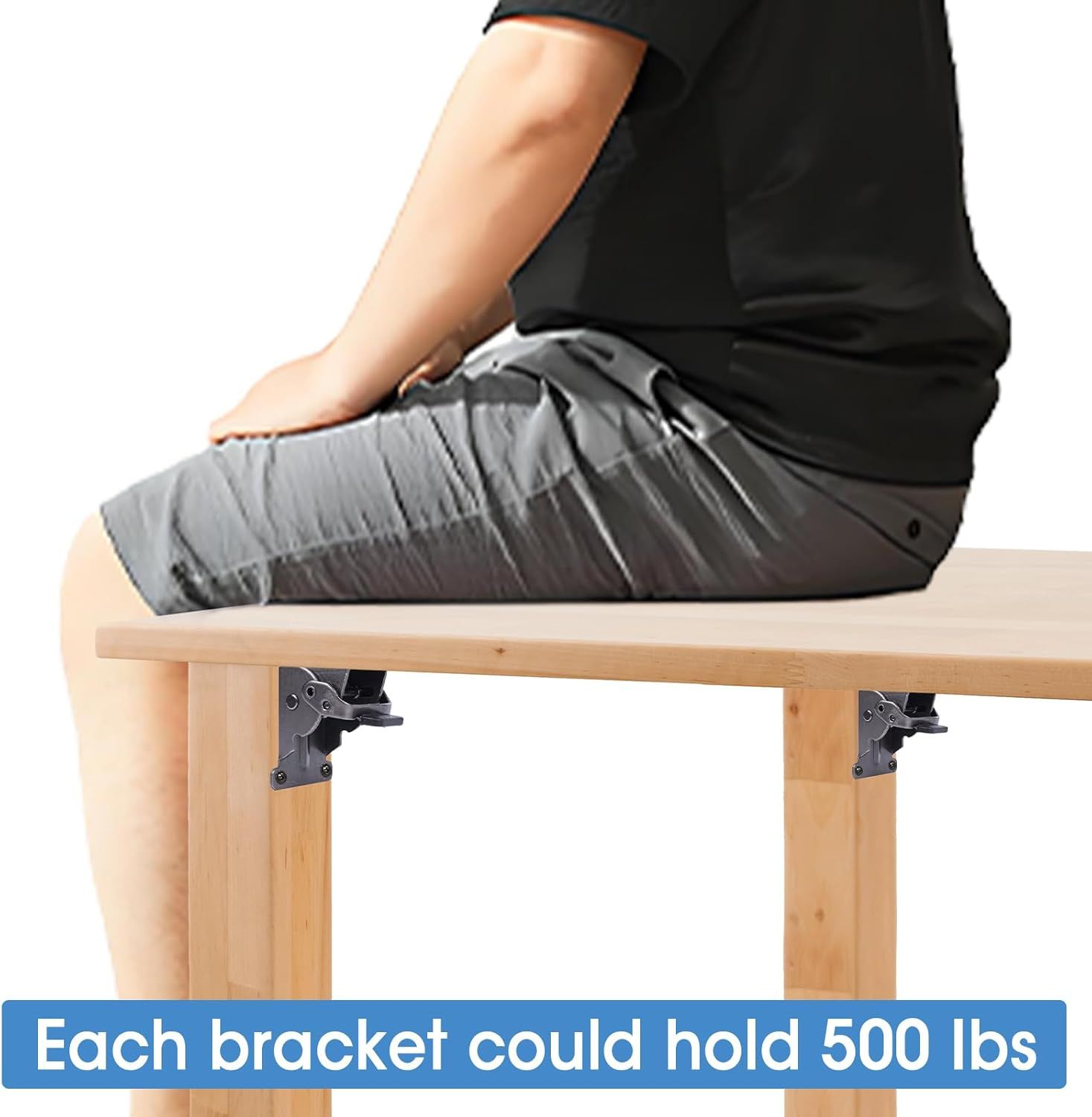 【High Quality & Heavy Duty】The folding table leg support can support up to 500 pounds and locksin the 90-degree position. The self-locking hinges can easily meet your needs.![]()