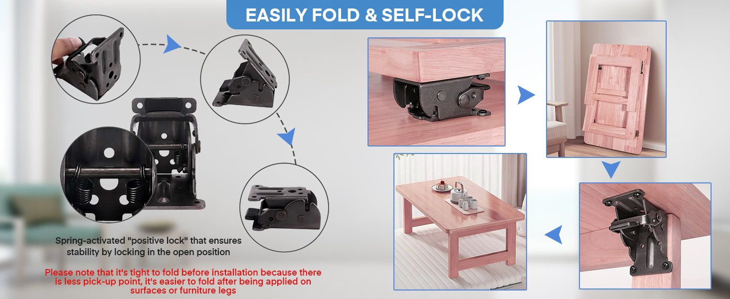 【Applications】TopDirect locking hinges are ideal for use with extendable folding table legs, DIY desks,bed legs, cabinets, folding workbenches, and folding doors. They help keep your home and workspace tidy.