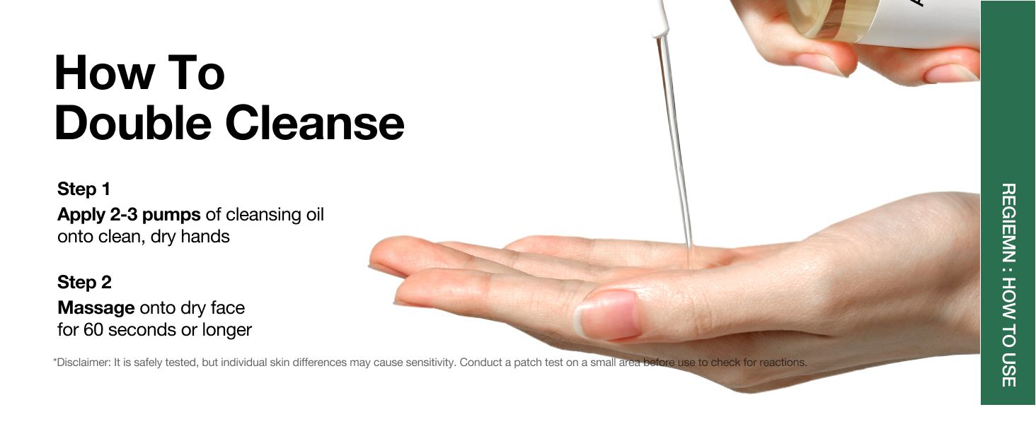 Apply an appropriate amount of cleansing oil to a dry face and gently massage to dissolve makeup, sunscreen, and excess sebum. Rinse thoroughly with lukewarm water, then follow up with a cleansing foam for a deeper cleanse and to remove any remaining residue.