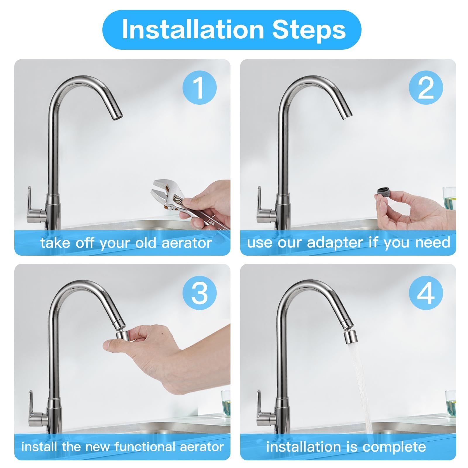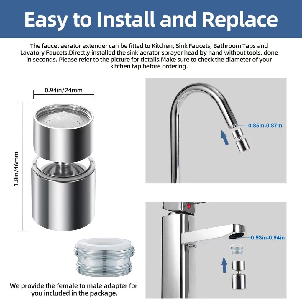 - Premium Material: Our aerator adapter is made of solid brass, rotate the bottom part change soft bubble stream to convert strong spray with 360 degree swivel, which is perfect to for Kitchen, Sink Faucets.