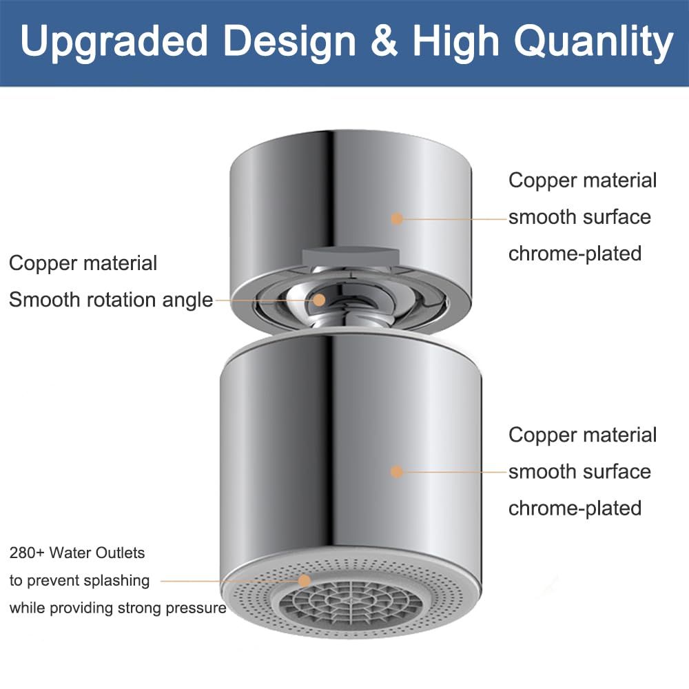 - Strong Spray Mode, Soft Bubble Mode: WOLYKIER Faucet Aerator designed with 2 kinds of water flow. Upgraded 280+ Water Outlets to prevent splashing while providing strong pressure. Added with 50% oxygen technology to dense spray, make strong scouring power, soft and non-splashing. Air and water mixed together, soft bubble mode is smooth, and strong to ensure the cleaning effecient.