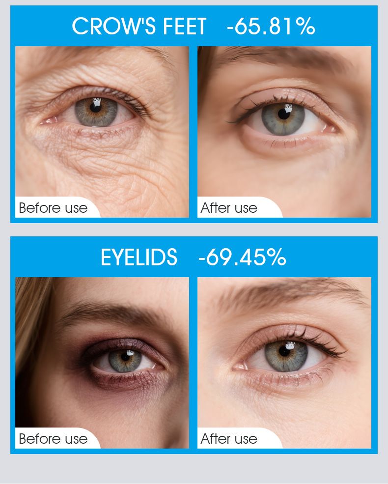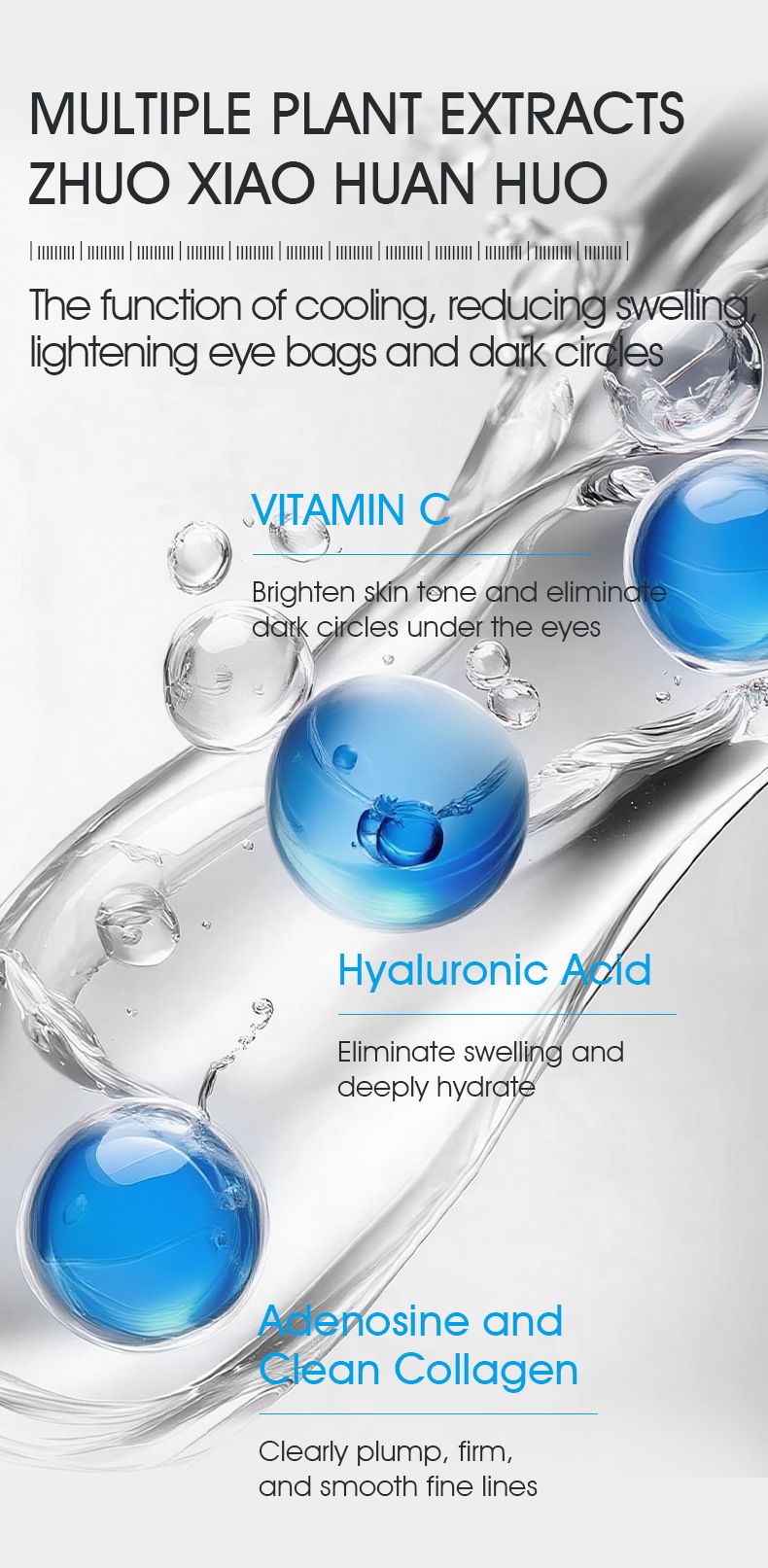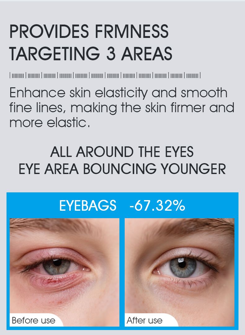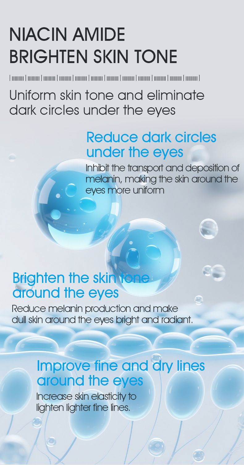 -Niacinamide and Vitamin C: Visibly brightens dark circles.