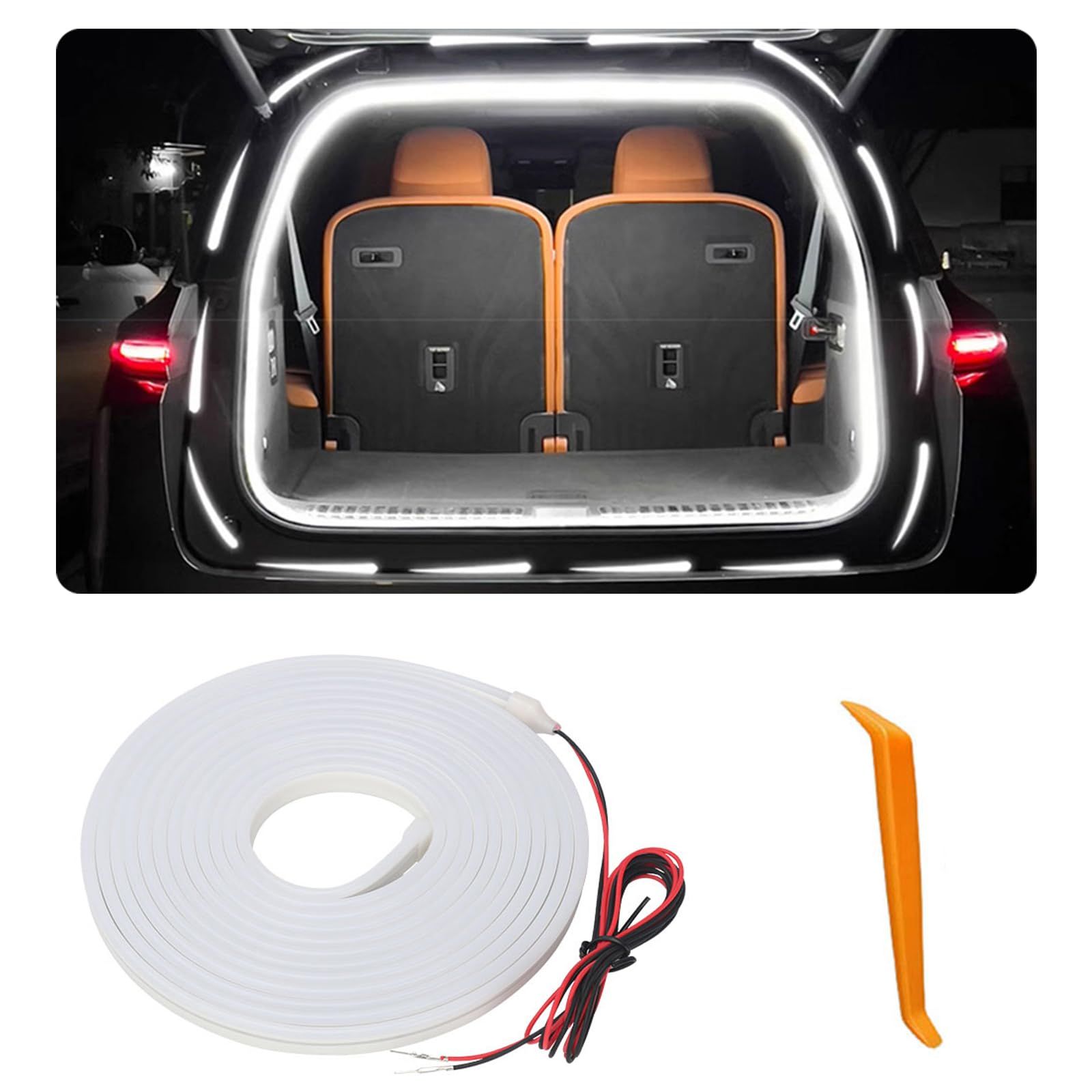 Flexible LED Strip Lights: KEVANLY car trunk led strip lights is made of silicone material, flexible and can be bent at will, waterproof and high temperature resistant.