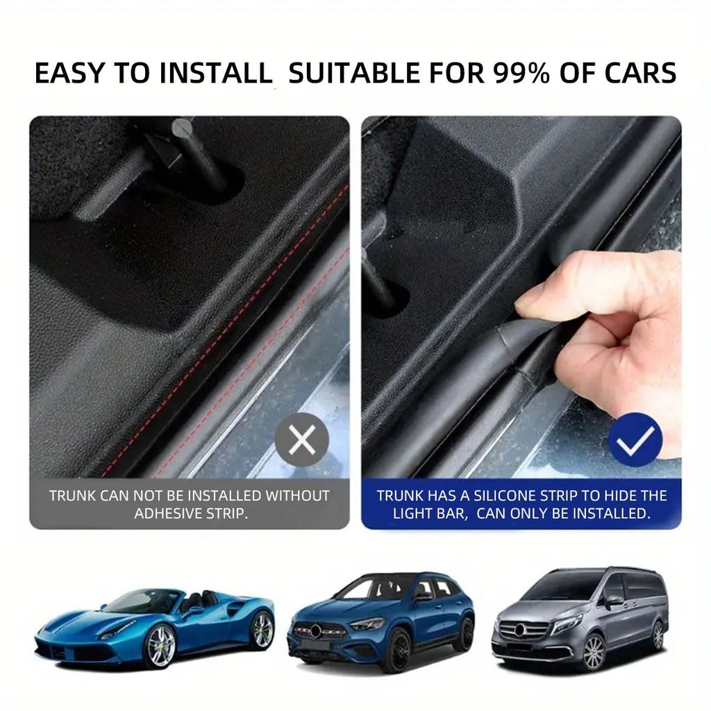 Free cutting: This led light strip for car can be freely cut to fit the trunk length of different vehicle models. The ultra-thin light strip is embedded in the silicone gaps of the trunk, preserving the original appearance of the vehicle.