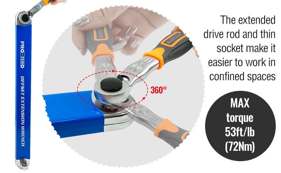 - Material: This offset extension wrench is made of high carbon steel and has a zero degree swing arc. Built-in high-strength special chain can save effort and improve efficiency.