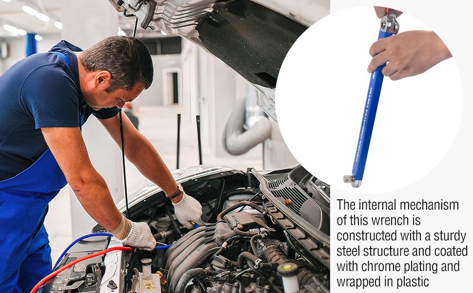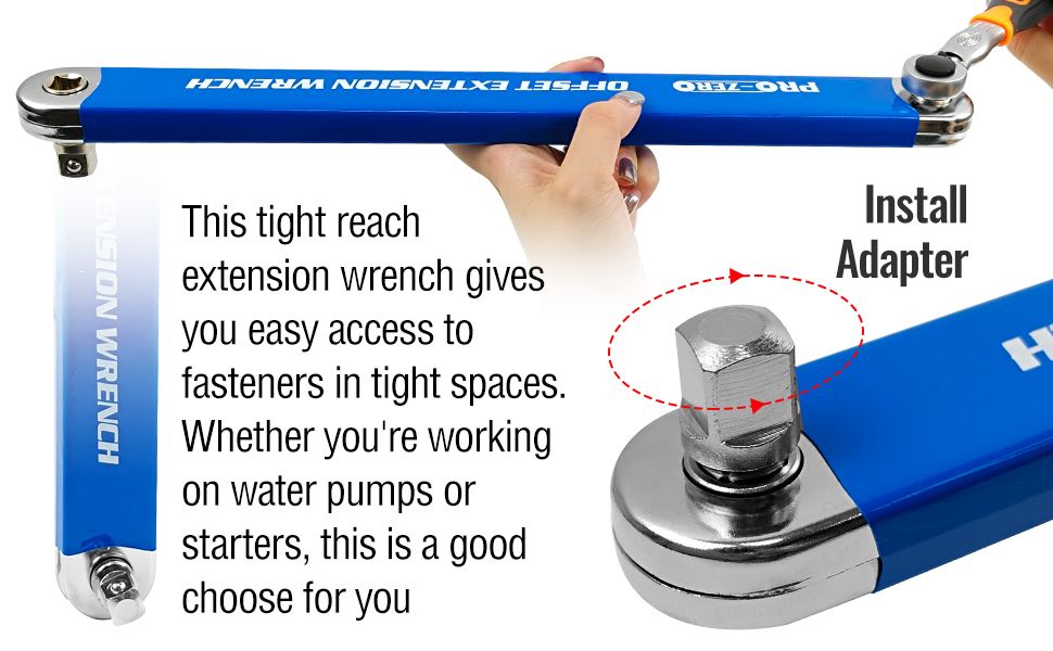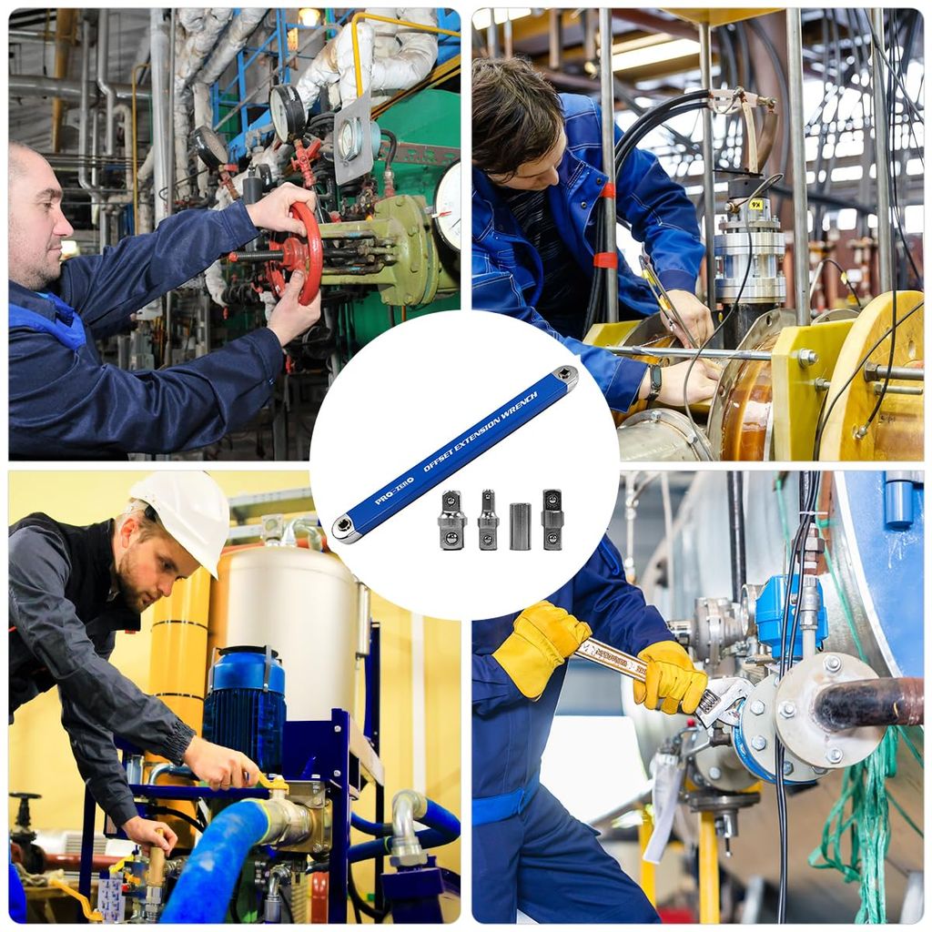 - Application: The tight reach extension wrench can be extended in a limited space, so that the ratchet wrench used with it has room to move. The swing range is small, saving time and effort, and it can be easily operated in a small space.