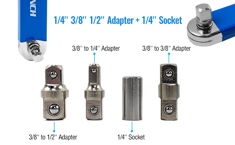 - Practical: Our extension wrench is equipped with four types of adapters to meet different usage needs. Suitable for auto repair and home improvement.