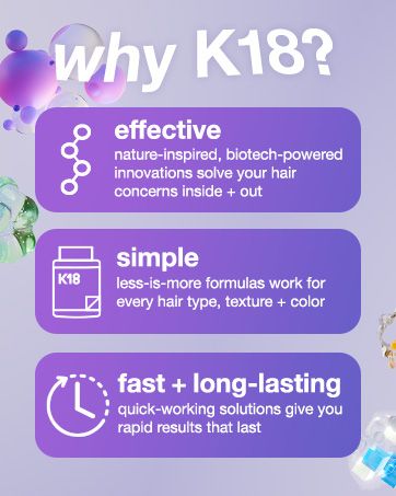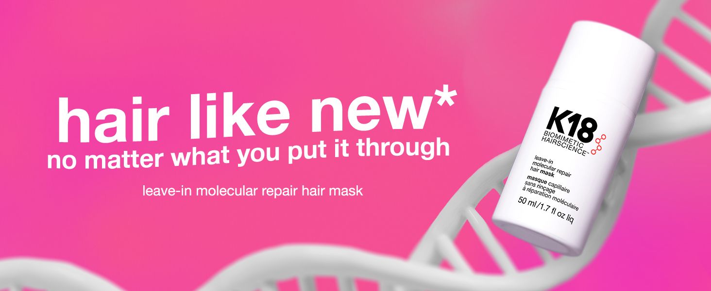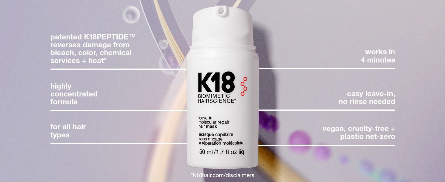 K18 leave-in molecular hair mask repairs dry and damaged hair, reversing hair damage caused by bleaching, chemical treatments, and heat.