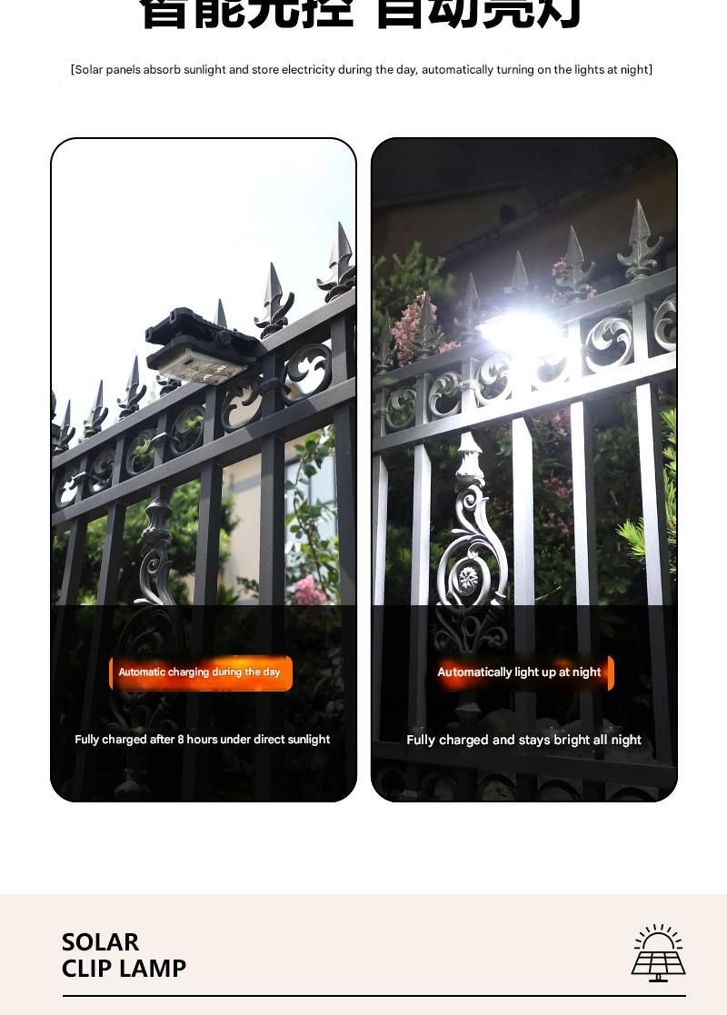 Limited-time group buy, 60% off. Outdoor solar clip-on lights (2-pack), with motion sensor, clip-on solar light, 3-mode motion sensor wall light, solar powered, portable emergency lighting, suitable for fences, patios, walls, garages, and yards.