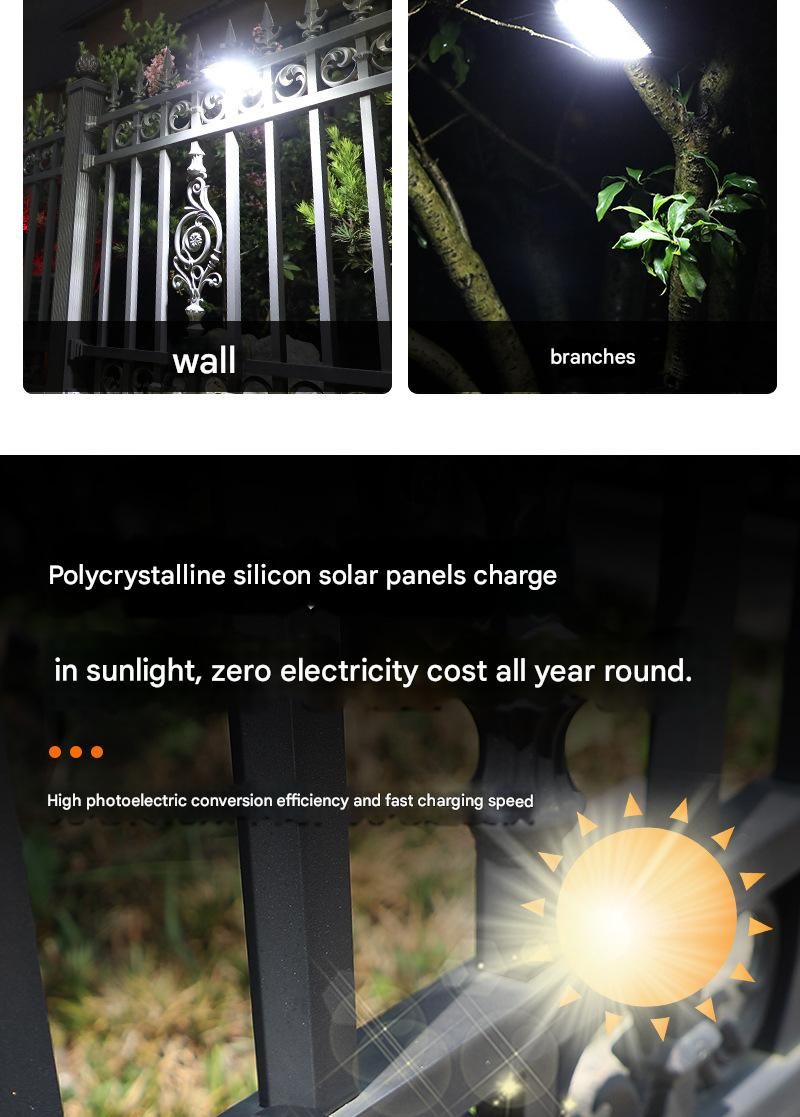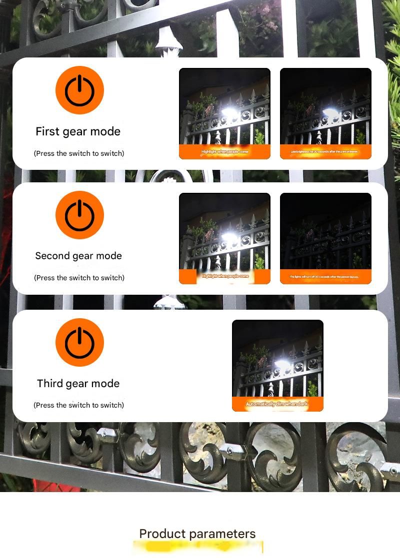 - 【3 Intelligent Lighting Modes: Adapt to Your Needs】 1st Gear (Motion-Activated): Ideal for pathways or entryways, saving energy. 2nd Gear (Dim + Boost): perfect for overnight security (e.g., yards, RVs) with low-level background light. 3rd Gear (Constant Light): on at dusk, off at dawn—great for events or steady patio lighting.