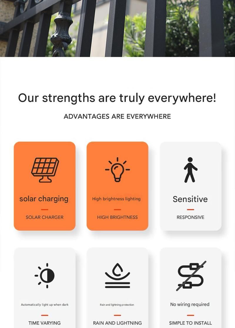 Motion sensor outdoor light have unique clip shape, very easy to install so you can use your imagination to install these led solar outdoor lights where you need lighting, such as deck, fence, garage, house glass, kennel, chickenhouse, driveways, backyards, front door and so on (Recommended install height: 4.92ft – 8.2ft.)