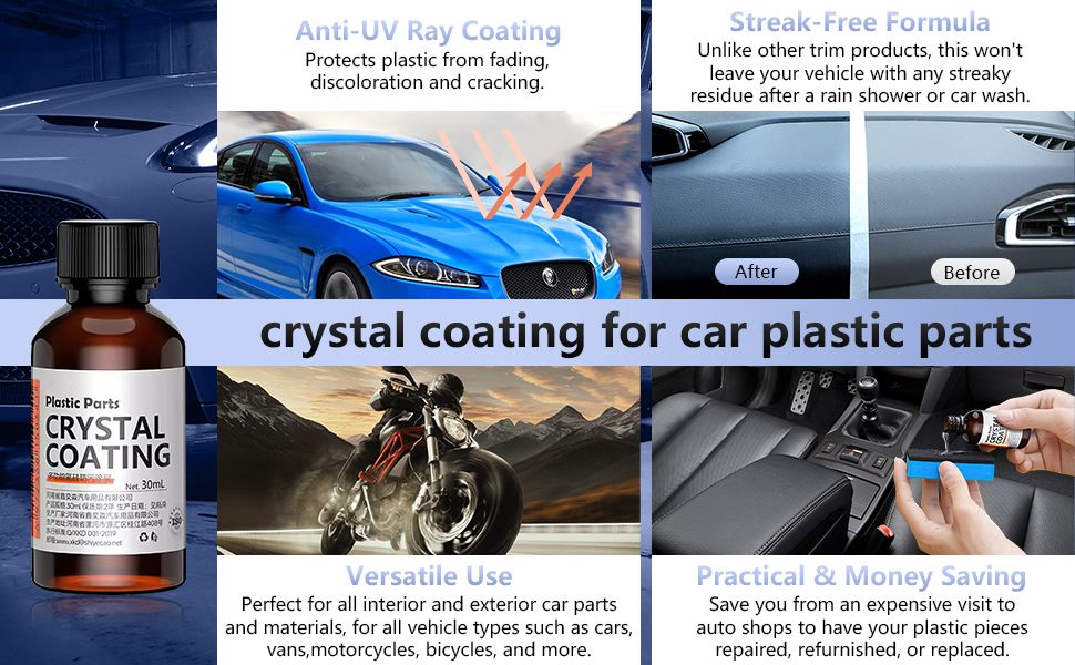 Plating Refurbishing Agent, Crystal Coating for Car Plastic Parts,Car Plastic Plating Refurbishing Agent,Nano Coating Agent,Cars Plastics Restorer for DIY, Automotive, 30ml(2 Pcs)