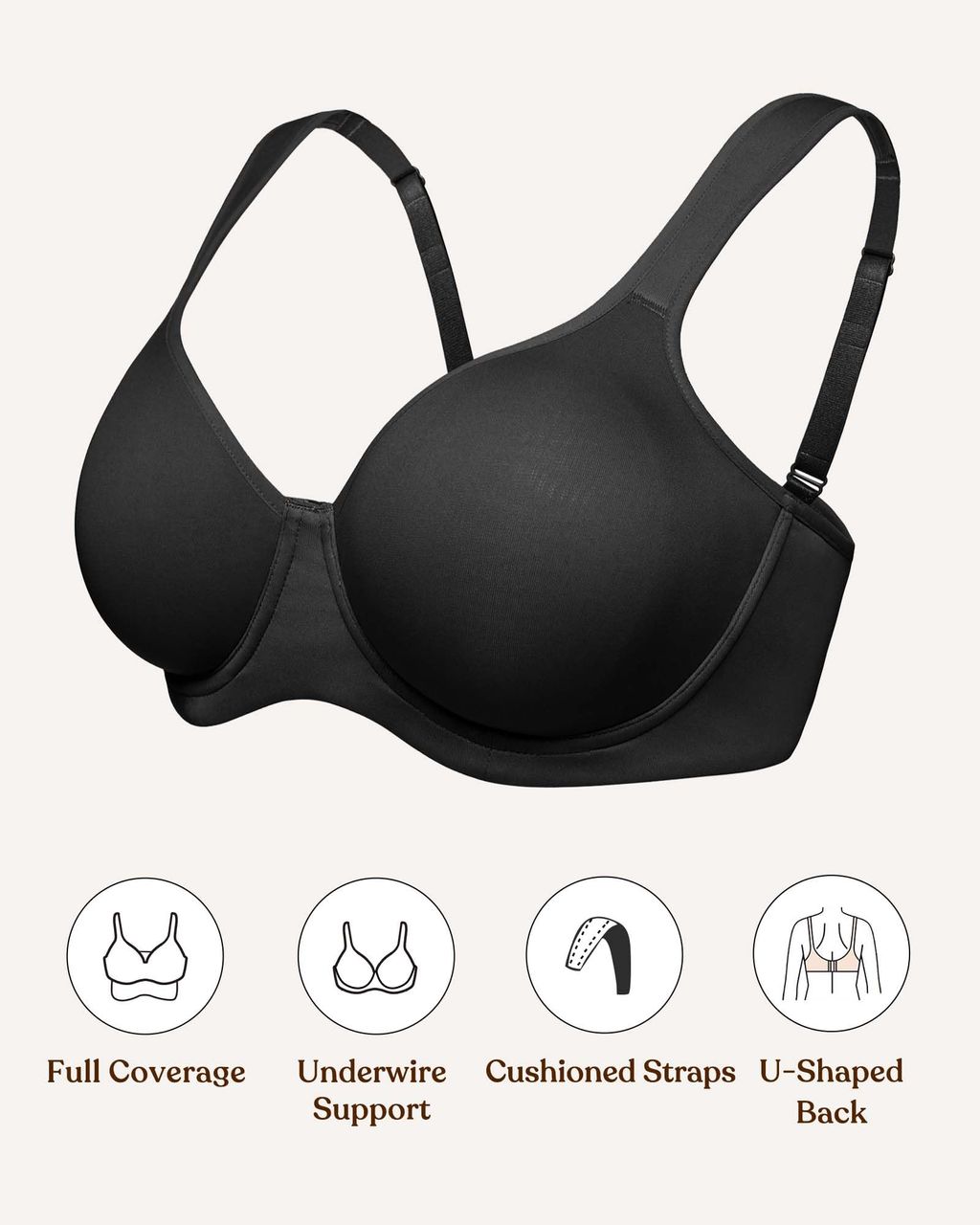 Wider, Adjustable Cushioned Straps - Thin straps can dig into your shoulders and leave painful red marks—especially with a fuller bust. This bra features wide, foam-cushioned straps that distribute weight more evenly and relieve pressure. Fully adjustable for a secure fit, they stay in place and keep you comfortable all day