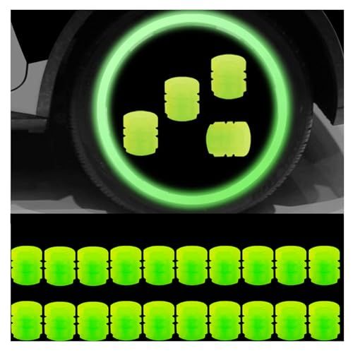 - 【COOL Fluorescent Design】Our tire valve caps are made of high quality ABS material and materiel of long-lasting luminous. They automatically light up when the vehicle is in motion and the surrounding environment is dark, creating a cool visual effect. Important: These tire valve caps require exposure to light before they will glow.