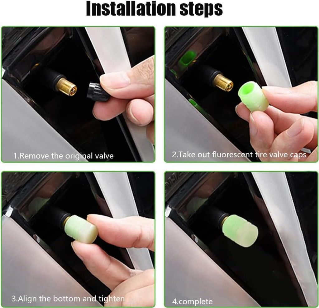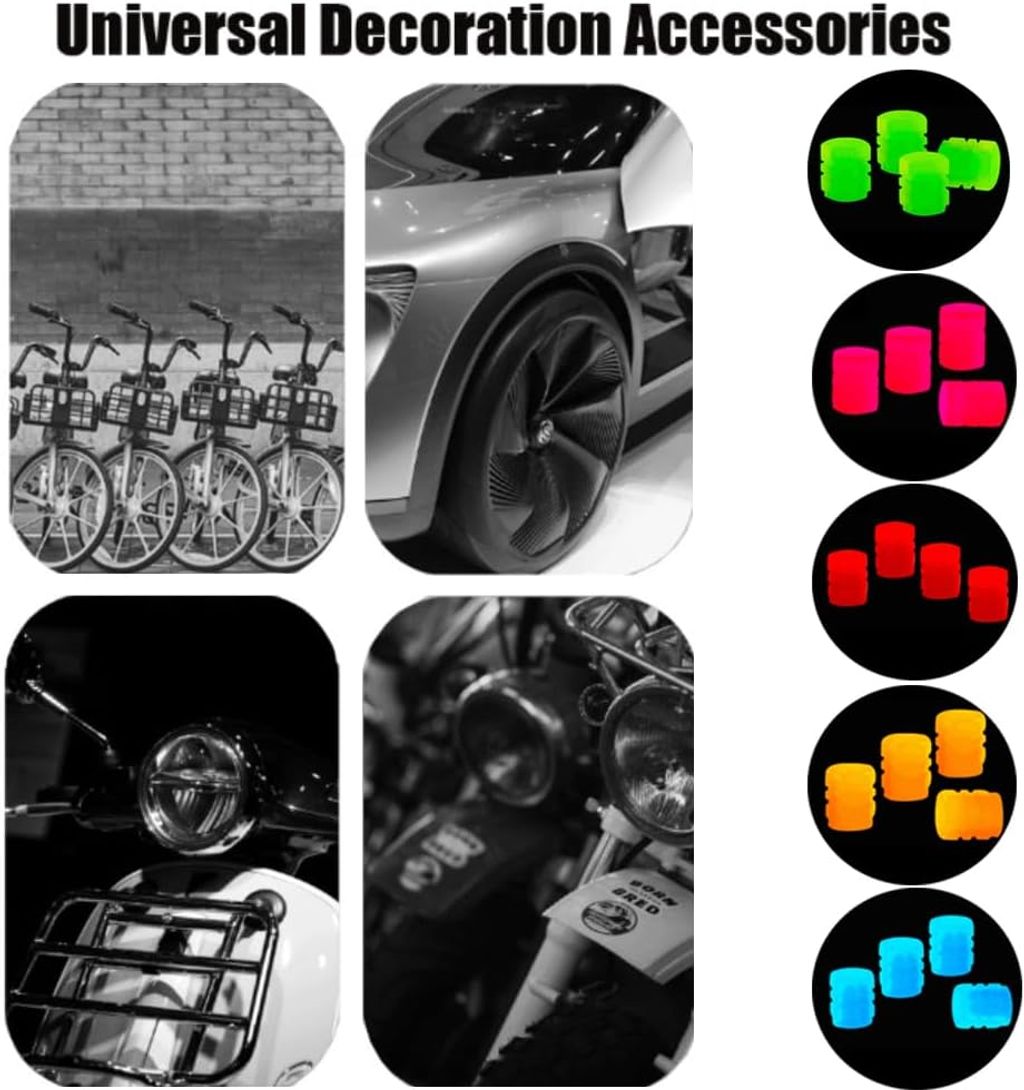 - 【Universal Decoration & Safety】These Fluorescent valve stem caps are a great way to enhance the style and visibility of your vehicle, whether it's a car, bike, or motorcycle. They provide a bright, attention-grabbing glow that improves nighttime visibility, adding both a stylish flair and an extra layer of safety for your wheels. After receiving it, place it under strong light to absorb the light and let it shine at its best.