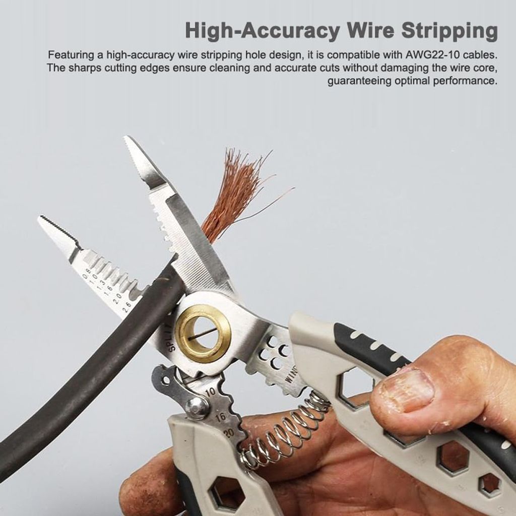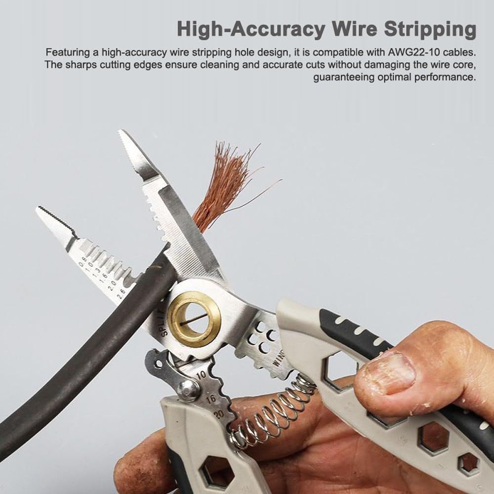 - ✔️ High-Accuracy Wire Stripping: Featuring a high-accuracy wire stripping hole design, it is compatible with AWG22-10 cables. The sharps cutting edges ensure cleaning and accurate cuts without damaging the wire core, guaranteeing optimal performance.