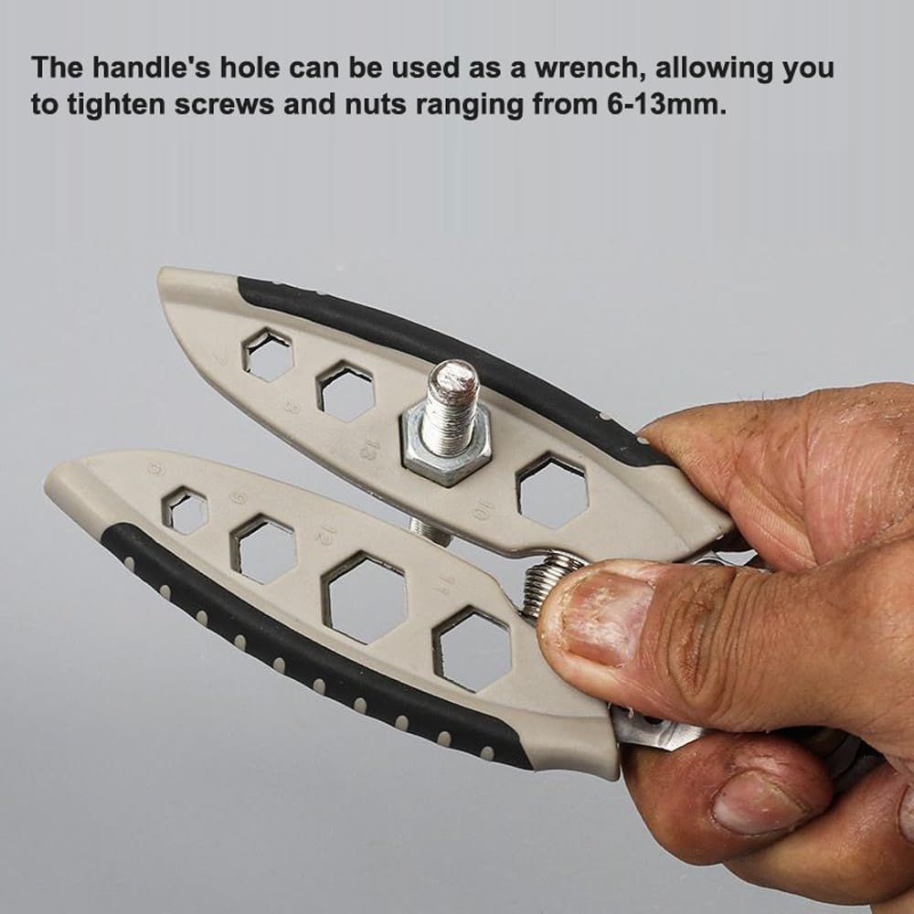 - ✔️ Ergonomic Design: Designed with ergonomic handles, it provide a comfortable and antislip grip, reducing hand fatigue during extended use. The handles also feature a self-locking button for enhanced safety. Additionally, the handle's hole can be used as a wrench, allowing you to tighten screws and nuts ranging from 6-13mm.